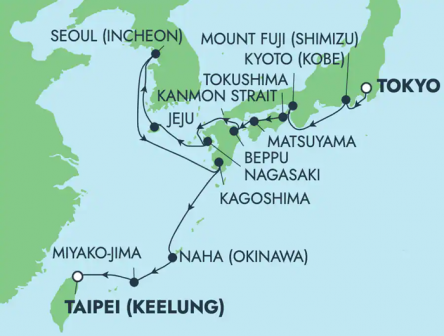 ノルウェージャンクルーズラインの思い出に残る旅で、アジアの真髄をご体験ください。受賞歴を誇る神戸牛を味わい、酒造所や酒ミュージアムめぐりで日本酒を堪能、3世紀に建立された生田神社も訪れます。ソウルでは五大宮を見学した後、活気のある市場をのぞいたり、素晴らしい展示を擁する美術館や博物館へ行ってみましょう。那覇では、眺めのいい高台に立つ波上宮や、広大な首里城を探訪。1泊する基隆では、野柳公園まで足をのばし、史跡や自然が作り上げた見事な岩の造形美を目にすることができます。基隆川沿いを自転車で走ったり、東門市場で買い物したり、18世紀からある龍山寺を訪れたりと、地元の人々の視線で街をお楽しみください。