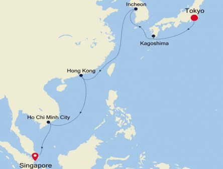 このエキゾチックな旅では、日本、中国、ベトナム、韓国の魅力を深く探究します。東京から出航し、鹿児島の活火山である桜島の円錐形の山々が目の前に現れます。古代の寺院と活気に満ちた現代性が融合した活気あふれるソウルで一夜を過ごします。香港に航海し、本格的な中華料理を味わいながら思い出に残る一夜を過ごします。シンガポールに到着する前に、象徴的なホーチミン市を探索する一夜は、あなたをワクワクさせるでしょう。