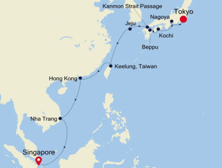 このエキサイティングな旅では、中国、日本、韓国の必見の不思議を探索し、海の上での素晴らしい日々とバランスをとります。東京とシンガポールという2つのエキサイティングな都市に挟まれ、名古屋では熱帯と伝統の融合を目の当たりにし、別府の粘り強さに刺激を受け、香港で一夜を過ごしながら歴史と自然に浸ることができます。富士の癒しの風景と見事な森が待っており、象徴的なニャチャンに立ち寄ります。