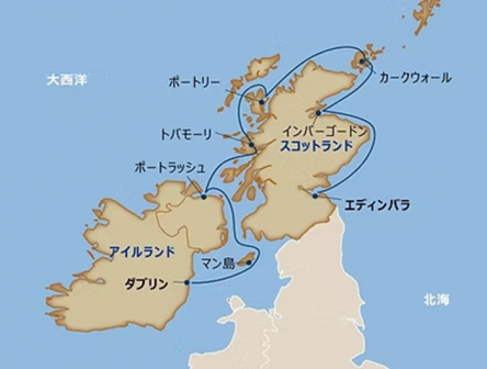 スコットランド、アイルランド、マン島を巡る魅力的なクルーズ。エジンバラから出発し、歴史的な街並みと美しい自然を堪能。オークニー諸島や北アイルランド、マン島のユニークな文化と風景が楽しめます。