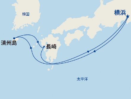 横浜を出港し済州島と長崎を訪れるコース