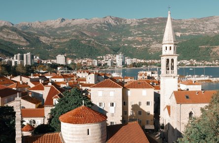 ブドヴァの町並み午後、保存状態の良い中世の町ブドヴァに到着。深夜、モンテネグロのコトルへ向けて出港。