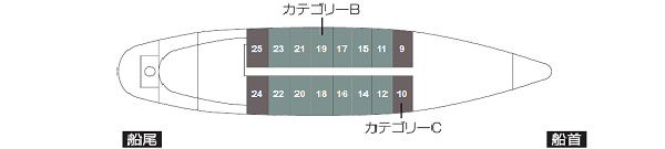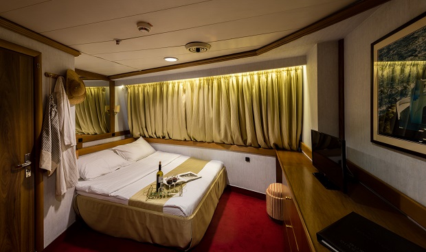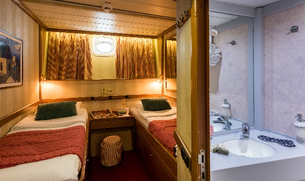 メインデッキとサンデッキに位置し、大きな窓からは、クルーズ中の素晴らしい景色をご覧いただけます。客室には、エアコン、テレビ、電話、ヘアードライヤー、ミニ冷蔵庫、セントラルミュージック、船内放送受信システム、セーフティボックスが完備されています。バスルームは、人工大理石で仕上げられています。