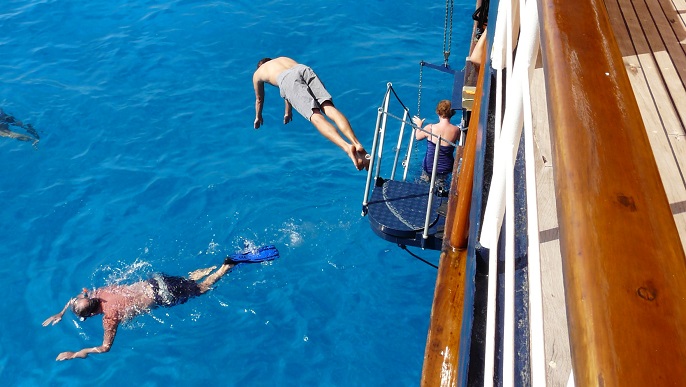 ●ポリエゴス島でのデッキBBQ & スイムストップ