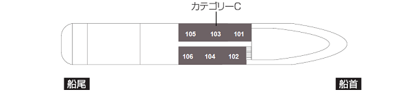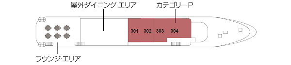 ローワーデッキにあります。客室には、シャワー付きバスルーム、個別の空調システム、有線音楽、薄型テレビ(衛星チャンネル)、CD/DVDプレーヤー、内線電話、ミニ金庫、ミニ冷蔵庫、ヘアードライヤー、アダプター(220V)などが完備されています。
