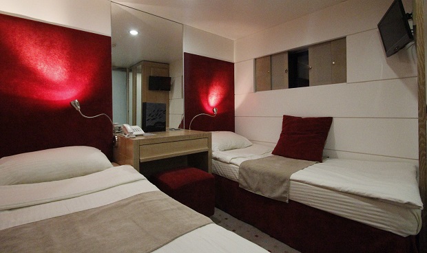 アパーデッキに位置しています。客室には、シャワー付きバスルーム、個別の空調システムシステム、有線音楽、薄型テレビ(衛星チャンネル)、CD/DVDプレーヤー、内線電話、ミニ金庫、ミニ冷蔵庫、ヘアードライヤー、アダプター(220V)などが完備されています。