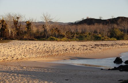 帰国の途へ/ガラパゴスクルーズ朝:サンタ・クルス島北海岸にある白砂の美しいビーチ、ラス・バーチャスに上陸。水鳥が羽を休めるラグーンを見学。