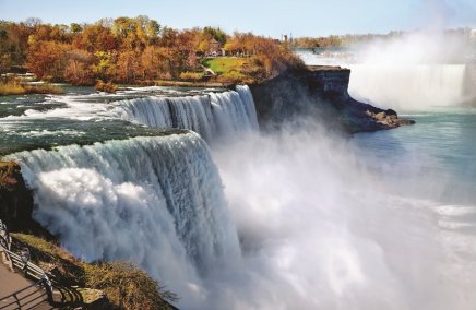 エリー湖のポートコルボーンで下船して、ナイアガラ半島のワイナリーのブドウ畑が広がる景観を楽しみます。そしてナイアガラでは、「ホーンブロワー・ナイアガラ・クルーズ」で、素晴らしいナイアガラ渓谷からブライダルベールの滝、カナダ滝の中心へと向かうと滝の飛沫と轟音に包まれ、最高のスリルを味わう事ができます。