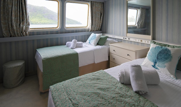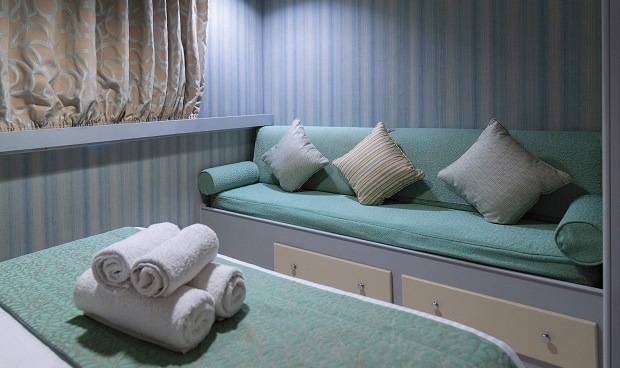 カテゴリーAの客室はダブルベッドまたは、ツインベッド。広々としており、大きな窓からは、寄港地のユニークな景色を楽しむことができます。客室には、シャワー付きバスルーム、個別の空調システム、有線音楽、薄型テレビ(衛星チャンネル)、内線電話、ミニ冷蔵庫、ミニ金庫、ヘアードライヤー、アダプター(220V)が完備されています。