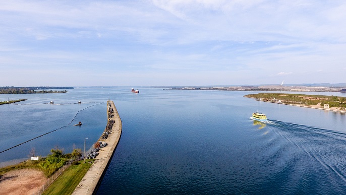 最初のロックは、1855年に建設され、運河が開設された最初の年には、27艘の船舶が通航しました。今日では、毎年10,000艘もの船がこの運河を利用して8,600万トンもの貨物を輸送しています。冬季には、五大湖の北部が氷の為に閉鎖されているにもかかわらず、運河を通航してスペリオル湖中の上部に移動した後、セントメアリー川の北東部の岸壁でカナダ初の女性宇宙飛行士の名前が付けられたロベルタ・ボンダー・プレイスでセントメアリー川の北東部の岸壁に着岸します。