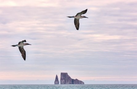 キッカーロックは、 サン・クリストバル島の西5kmのところにある凝灰岩の円錐形の残骸です。スペイン語の「レオン・ドルミド(眠れる獅子)」と英語の「キッカーロック」は、この岩が1つしかないことを意味していますが、実際には長さ300m、幅100m、最大高さ約150mの大きな岩と、その隣に深さ20mほどの細い水路で隔てられたオベリスク状の岩が存在します。キッカーロックに近づくと、アオアシカツオドリ、ナスカカツオドリ、グンカンドリなどが上空から観察でき、海岸ではアシカを見ることができます。シュノーケラーやダイバーからは、マンタ、シュモクザメ、ウミガメなどが報告されています。スペイン語の名前は、南側か見た地層が眠っているライオンに似ていることに由来しています。英語名については、1794年にジェームズ・コルネットがポーツマスの有名なランドマークになぞらえたという興味深い説がある。