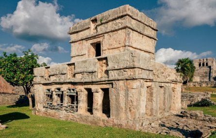 トゥルム観光バスで沿岸のマヤ遺跡群「リビエラ・マヤ」を通りトゥルムを訪れます。カリブ海を見下ろす絶壁の崖の上にあるこの古代マヤの城塞都市は巨大な防御壁で囲まれています。5ヶ所の出入口の1つから入るとトゥルムがトルコ石やヒスイのような珍しい石の貿易で栄えていた700年前の時代の様子をガイドツアーでお楽しみ頂きます。最も印象的な建築物で寺院と要塞の両方の役割を持つエルカスティーヨは美しい白浜のビーチから十数メートルの高さの石灰岩の上に建てられています。ビーチでのビュッフェランチをお楽しみいただいた後、本船に戻ります。