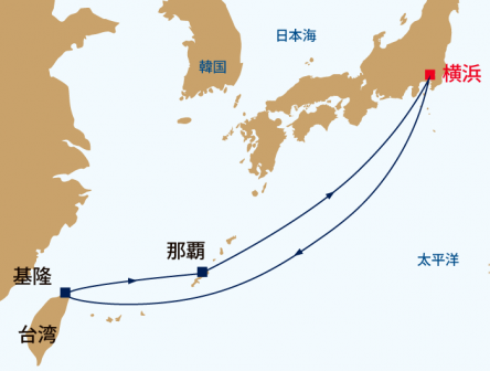 このコースは夏の季節に人気寄港地の台湾の基隆、那覇を訪れます。