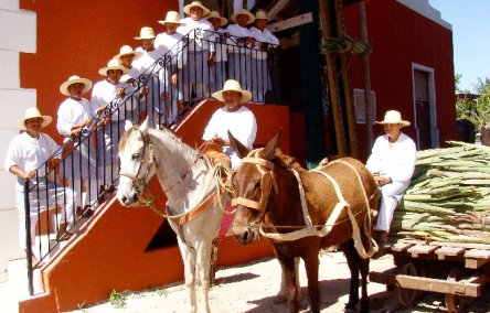 ヴィクトリー・クルーズ社のもう一つの特別手配は、ユカタン半島最後の大規模農場の訪問です。かつて裕福なペオン家が所有していた19世紀のアシエンダ(大規模農場)を訪れます。緑豊かな敷地に大きな柱廊のベランダがある荘園では、ラバが曲がりくねった線路にそって荷車を引いていた木製のプラットフォームを見学します。ラバが引く荷車は、アガベサボテンを栽培する広大な畑へ労働者を運ぶための伝統的な輸送手段でもありました。また、ヘネケンサボテンを繊維に加工するために使用していた昔の機械を見学します。ヘネケンは、繊維に加工してハンモックから船を埠頭につなぐ巨大な大綱に至るまで作られました。また、アガベは、テキーラの原料としても使われています。