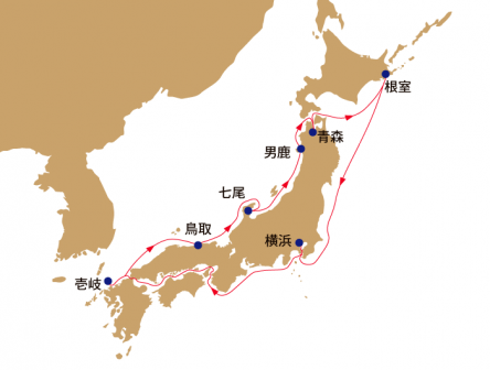 麦焼酎発祥の地「壱岐」、和倉温泉がある能登の中心地「七尾」、なまはげが有名な「男鹿」、弘前城の桜が美しい「青森」、日本の最東端「根室」。日本有数の港を巡るにっぽん丸ならではのクルーズです。