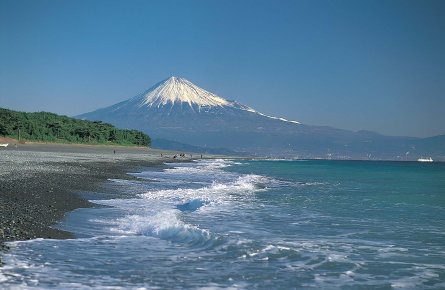 三保松原_Ⓒ静岡県観光協会清水港からは、2013年に世界文化遺産に指定された富士山を間近に望むことができ、神戸、長崎と並び日本三大美港のひとつとして知られています。三保松原では、その海岸線に沿って、およそ4.5キロにわたる松林が続きます。