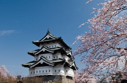 弘前城_Ⓒアプティネット青森港は、津軽半島と下北半島に抱えられるように陸奥湾の奥に位置する天然の良港です。8月に行われるねぶた祭りは東北三大祭りのひとつ。実際に使用されたねぶたを展示する施設もあり、開催時以外も祭りの迫力を感じることができます。港のシンボルは、高さ76 メートル、地上15 階建ての正三角形のビル、青森県観光物産館アスパム。
