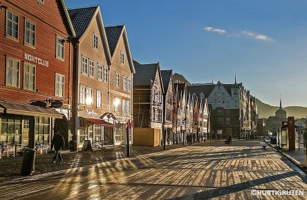 ハンザ同盟都市として繁栄したベルゲン。世界遺産のブリッゲン地区、魚市場、フロイエン山ケーブルカーなどの見どころは港の周辺に集中しています。フッティルーテンのターミナルに行く前に散策を楽しんではいかがでしょうか。