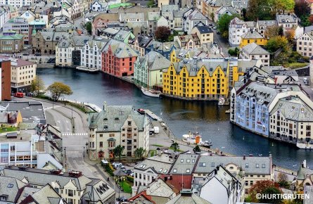 1904年の大火で多くの建物が失われたオーレスンは、アールヌーボー様式の街並みを建設して復興を遂げました。美しい建物をめぐる気ままな街歩きはいかがでしょうか。街を一望する展望台を訪れることもできます。