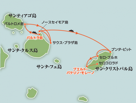 ガラパゴス・レジェンド号4日間Cクルーズは諸島内の東部を巡ります。