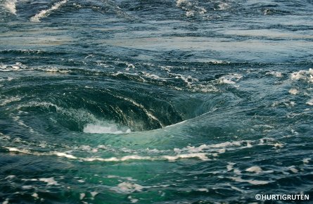 北極圏に入ってしばらく北上すると、ボードーの少し手前、サルトストラウメン海峡で渦潮が見られます。この渦潮は世界最速と言われ、日本の「鳴門の渦潮」が時速約20kmのところ、時速50km近くに達することもあります。