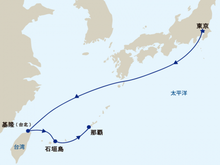このコースは人気寄港地の台湾の基隆、沖縄の那覇、石垣島を訪れます。
