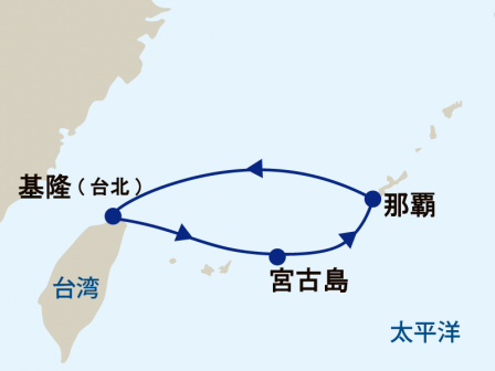 このコースは人気寄港地の台湾の基隆、沖縄の那覇、宮古島を訪れます。