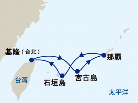 このコースは人気寄港地の台湾の基隆、沖縄の那覇、宮古島、石垣島を訪れます。