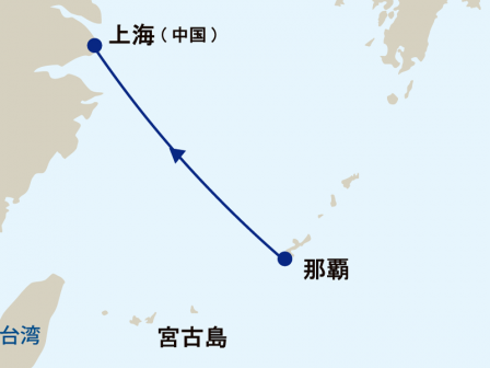 このコースは人気寄港地の那覇から出発し、中国の上海までの片道船旅となります。