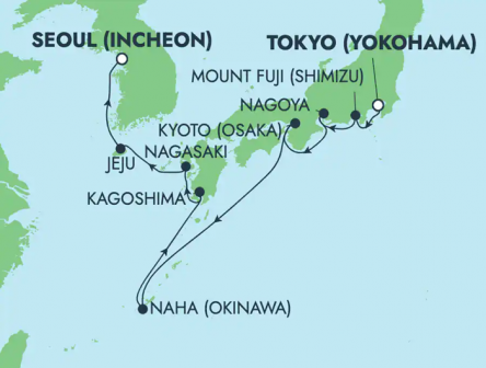 ・正確な出航・入港時間については、それぞれご利用のクルーズをご確認ください。 時間はすべて寄港地の現地時間となっています。