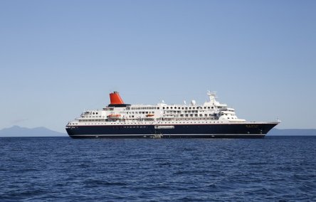 にっぽん丸のテンダーボートまたは現地の船に乗りかえて上陸します。 なお、天候によっては上陸できない場合もあります。通船による乗下船は30分〜60分を要します。