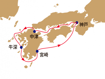 宮崎の「宮崎牛」と各寄港地の旬の食材を船内でお楽しみいただきます。
