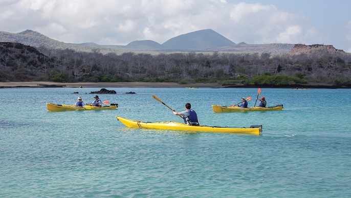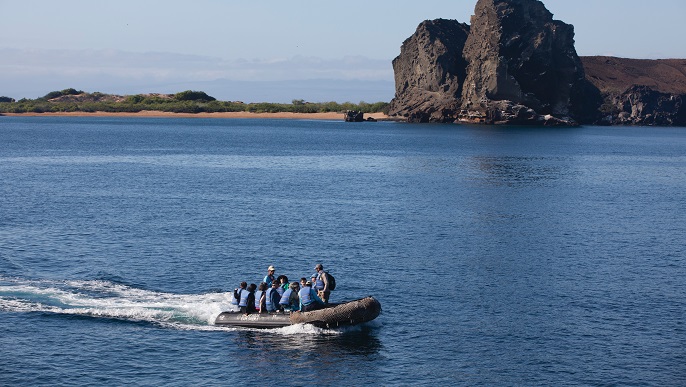 私たちの船は、サリバンベイのバルトロメ島の火山の月面のような景色を眺めながら停泊します。。ゾディアックに乗って上陸し、388段の遊歩道を登ります。乾燥した火山地帯を抜けると、ヨウガントカゲ、ガラパゴスノスリ、アオアシカツオドリを観察できるチャンスがあります。しかし、登山者の究極のご褒美は、ガラパゴス諸島で最も美しいパノラマの1つ、遠くにバルトラ島、大ダフネ山、小ダフネ山の黒い火山円錐が見えるピナクルロックの眺めです。下りる途中、太陽の光が、暗い火山岩と鮮明なコントラストをなす先駆的な植物種の緑を捉える様子を眺め、黄金色のビーチで泳いだりシュノーケリングを楽しんだりする時間を楽しみにしてください。