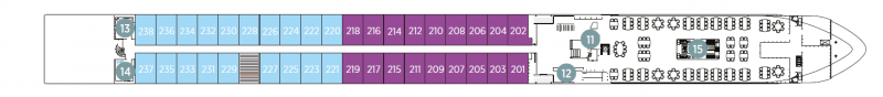 エメラルド・リベルテは最大132名のお客様を収容でき、最新の設備を備えた次世代リバークルーズの象徴とも言える存在です。4つの美しいデッキには、スイートルーム、ステートルーム、そしてリラックスできるパブリックスペースが配置されており、クルージング中の贅沢なひとときをお届けします。