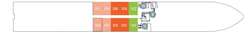 この船は最大で112名のお客様をお迎えすることができ、乗組員とゲストの比率が1:3というサービスのクオリティを実現しています。コンパクトなサイズながら、ドウロ渓谷での休暇を快適に過ごすための設備や機能は充実しており、スイートやステートルームに加え、現代的でスタイリッシュなホライゾンバーやラウンジも完備しています。エメラルド・ウォーターウェイズの他の船と同様に、インテリジェントなデッキプランニングが施されており、充実したクルーズ体験を提供します。