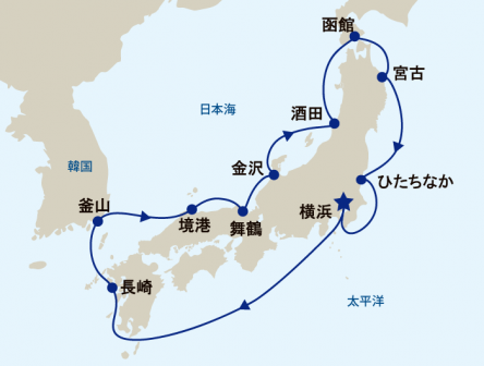 ※ 寄港地では自由散策もしくはショアエクスカーション(寄港地観光ツアー:別料金)をご利用ください。
