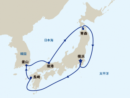 横浜発着、日本一周と韓国を巡るコースです。