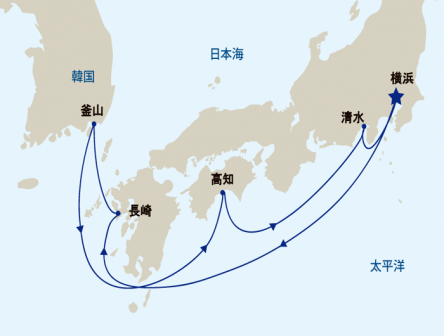 ※ 寄港地では自由散策もしくはショアエクスカーション(寄港地観光ツアー:別料金)をご利用ください。
