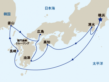 横浜発着、西日本と韓国を巡るコースです。