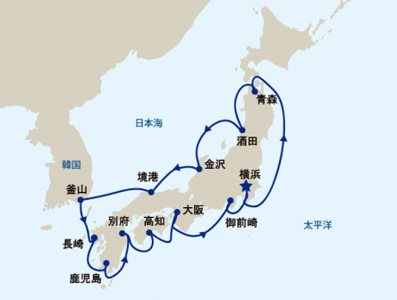 横浜発着、日本一周と韓国を巡るコースです。