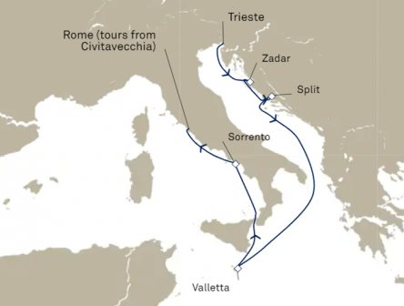 クロアチアの豊かな歴史と美しい風景に魅せられるクイーン・ヴィクトリアでの7泊のバケーション。イタリアの首都ローマの壮麗な魅力も満喫しましょう。