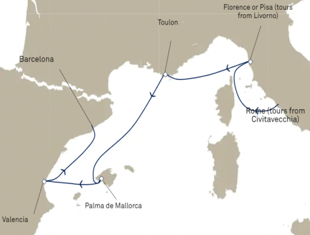 クイーン・ヴィクトリアでの1週間で、ストレスを解消しませんか。歴史豊かなローマで冒険をスタートしたら、トスカーナの海岸線や静かなスペインのビーチを散策してバルセロナへと向かいます。