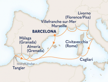 バルセロナを出発するクルーズでは、カディスの歴史的遺跡を探索し、活気あふれるジブラルタル海峡を航行。ローマの壮大なコロッセオを訪れ、コートダジュールの美しい風景でリラックスする贅沢な旅を楽しめます。