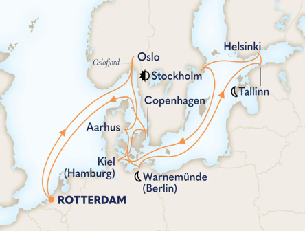 ロッテルダム発のクルーズで、スウェーデン、デンマーク、ドイツの魅力を存分に堪能しましょう。ストックホルムに一泊し、オスロ・フィヨルドの壮大な景観や、美しい運河を巡る旅を楽しむことができます。自然の絶景と文化の宝庫が織りなす体験をお見逃しなく。