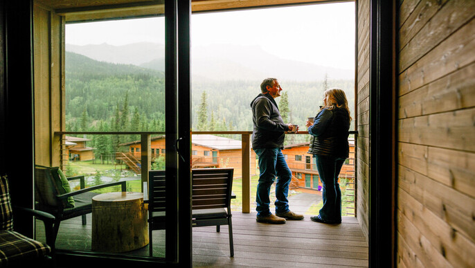 マッキンリー・シャレー・リゾートのデナリ・スクエア™は、デナリ観光の完璧な拠点です。日中は美しい自然を楽しみ、夜は快適にリラックス。敷地内からはネナナ川越しにデナリ国立公園の素晴らしい景色が広がり、高級レストランや地元のショップも充実しています。ホーランド・アメリカ・ラインのツアーでは、専門ガイドと共にアラスカのビッグファイブを探しながら、豊かな体験が待っています。川下りや遊覧飛行、ドッグマッシャーとのふれあいなど、忘れられないアドベンチャーが盛りだくさんです。デナリの大自然を心ゆくまで味わってください。- 宿泊