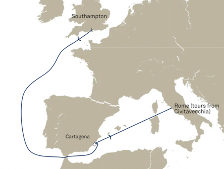 地中海での休暇をお楽しみいただけるクルーズ。航海日には船上でゆったりとくつろぎ、歴史あるカルタヘナを探索した後は、イタリアの古代遺跡への玄関口であるローマで下船します。