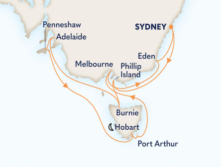 南オーストラリアを巡る15日間のクルーズで、シドニーを出発し、フィリップ島やカンガルー島、ホバートを訪れます。美しい海を航海しながら、タスマニアの自然や魅力的な港町を満喫。食文化やワイン、壮大な景色が織りなす旅で、特別な思い出を作りましょう。