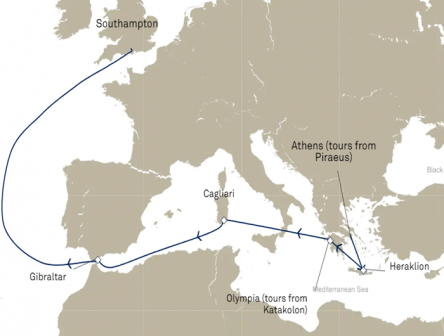 古代遺跡やのどかな島々の無限の魅力を満喫できる、10泊のクルーズ。航海日には、クイーン・アンのパビリオン・プールで地中海の太陽を楽しみましょう。