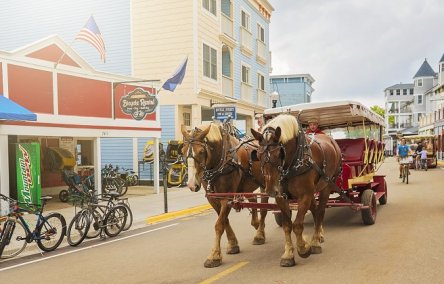 マキノー島観光ヒューロン湖とミシガン湖を結ぶマキノー海峡で目覚めるでしょう。マキノー島は自動車の使用が禁止されているため、ヴィクトリアン調の国の歴史的建造物へ馬車ツアーをお楽しみください。島の歴史について学び、アメリカ産業初期の船長によって建てられた「夏の家」を見学します。崖の頂上からマキノー海峡を見下ろすマキノー砦へのツアーでは1812年の米英戦争で築かれた戦略的な拠点について学びます。その後、世界で最も長いベランダで有名なグランドホテルからの景色とビュッフェの昼食をお楽しみください。昼食後、町に戻り散策やショッピング等をお楽しみください。出港前に、グランドホテルに常駐している歴史家ボブ・タガッツが本船を訪れ、船内でマキノー島とこの世界的に有名なグランドホテルホテルの歴史について多彩なエピソードを語ってくれます。- 宿泊