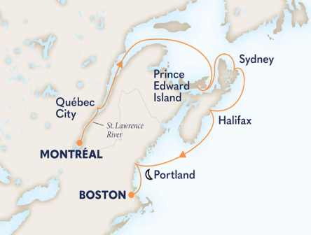 魅力あふれるケベックシティを後にし、セントローレンス川をクルーズしながらシャーロットタウンの美しい海岸へと向かいます。ボストンに到着する前に、シドニーのフィドルの音色やハリファックスの歴史的な名所を存分に楽しみましょう。